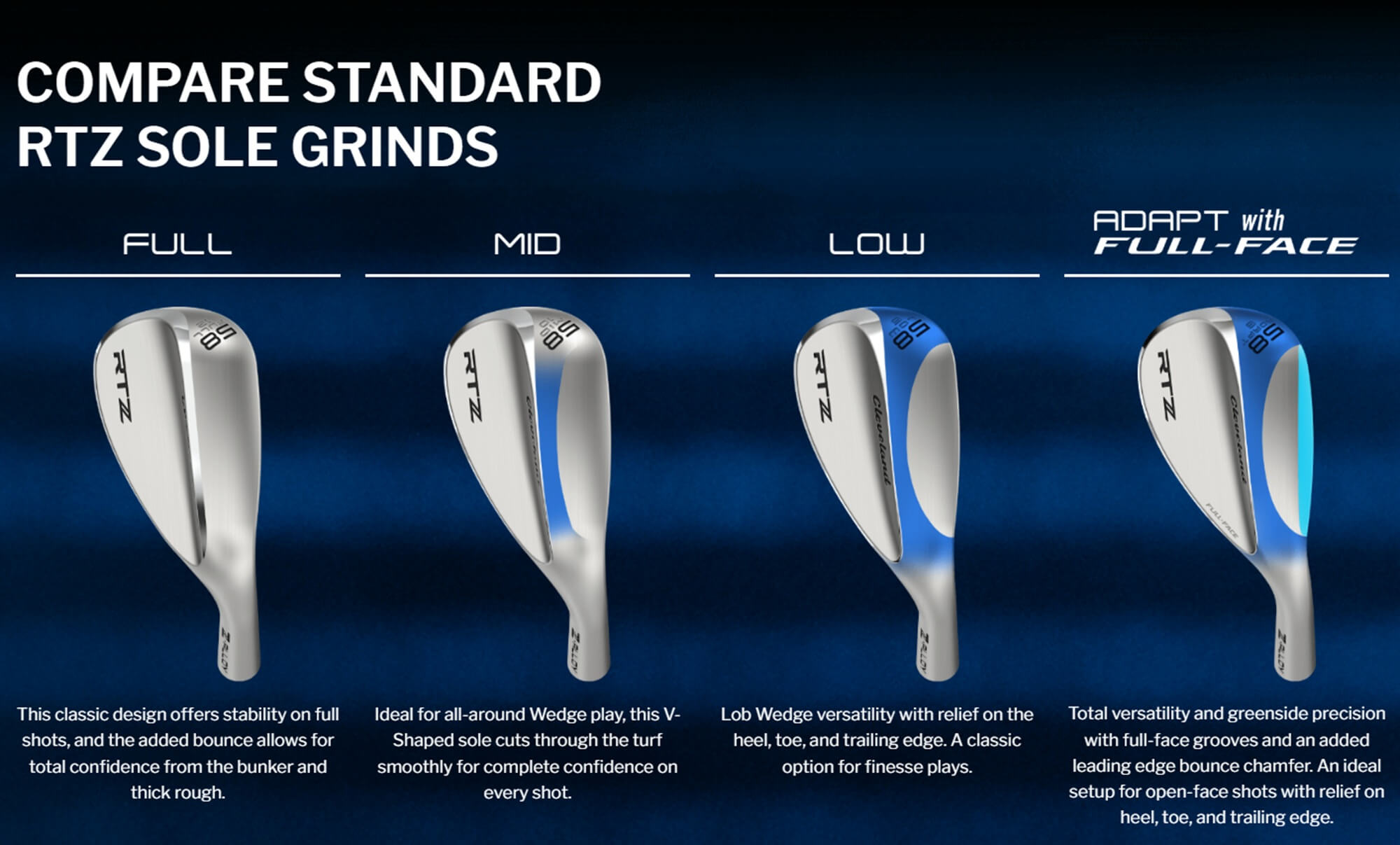 All of the sole grinds listed above are stock throughout the Cleveland RTZ line. However, the Tour Rack models feature a Raw finish (which won’t rust, thanks to Cleveland’s proprietary Z-Alloy material), and those soles can be customized to meet your specific needs.