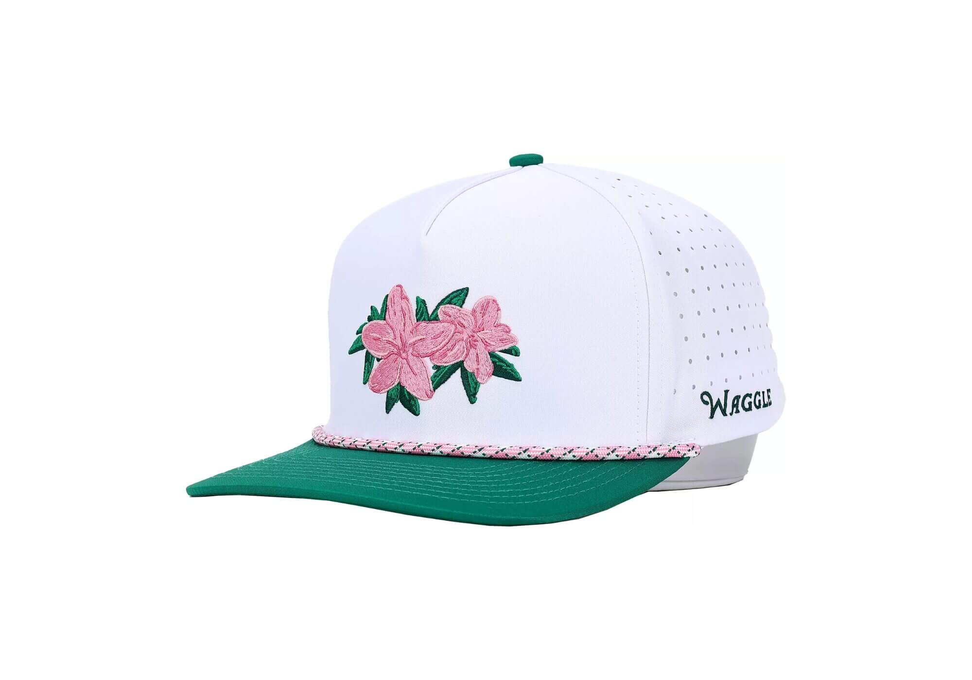 The WAGGLE Azaleas Hat actually looks like something that could have come directly from Augusta National. Against the white backdrop, the embroidered azaleas have a ton of detail and look great with the contrasting green brim. Subtle, powerful, visually striking, this hat is an easy wear.