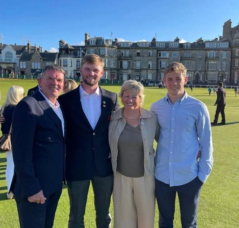 <p>Liam Nolan with his family during the Walker Cup at St Andrews </p>