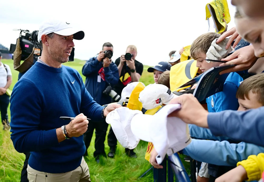 <p>Rory Mcilroy of Northern Ireland signs autographs with spectators during practice prior to The 153rd Open Championship at Royal Portrush Golf Club on July 14, 2025 in Portrush, Northern Ireland. (Photo by Oisin Keniry/R&A/R&A via Getty Images)</p>