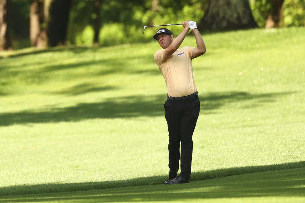 While he bogeyed the short fourth and the ninth after mistakes from the tee, he was excellent on the greens, making 126 feet of putts to gain more than 4 strokes on the greens - the second best in the field behind Davis Riley.