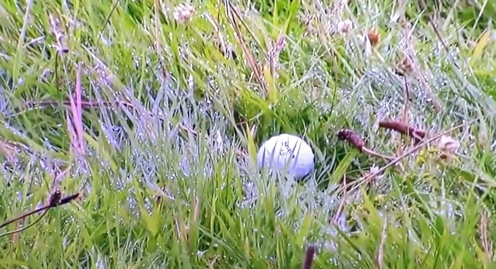 <p>Shane Lowry's ball in the rough at the 12th</p>