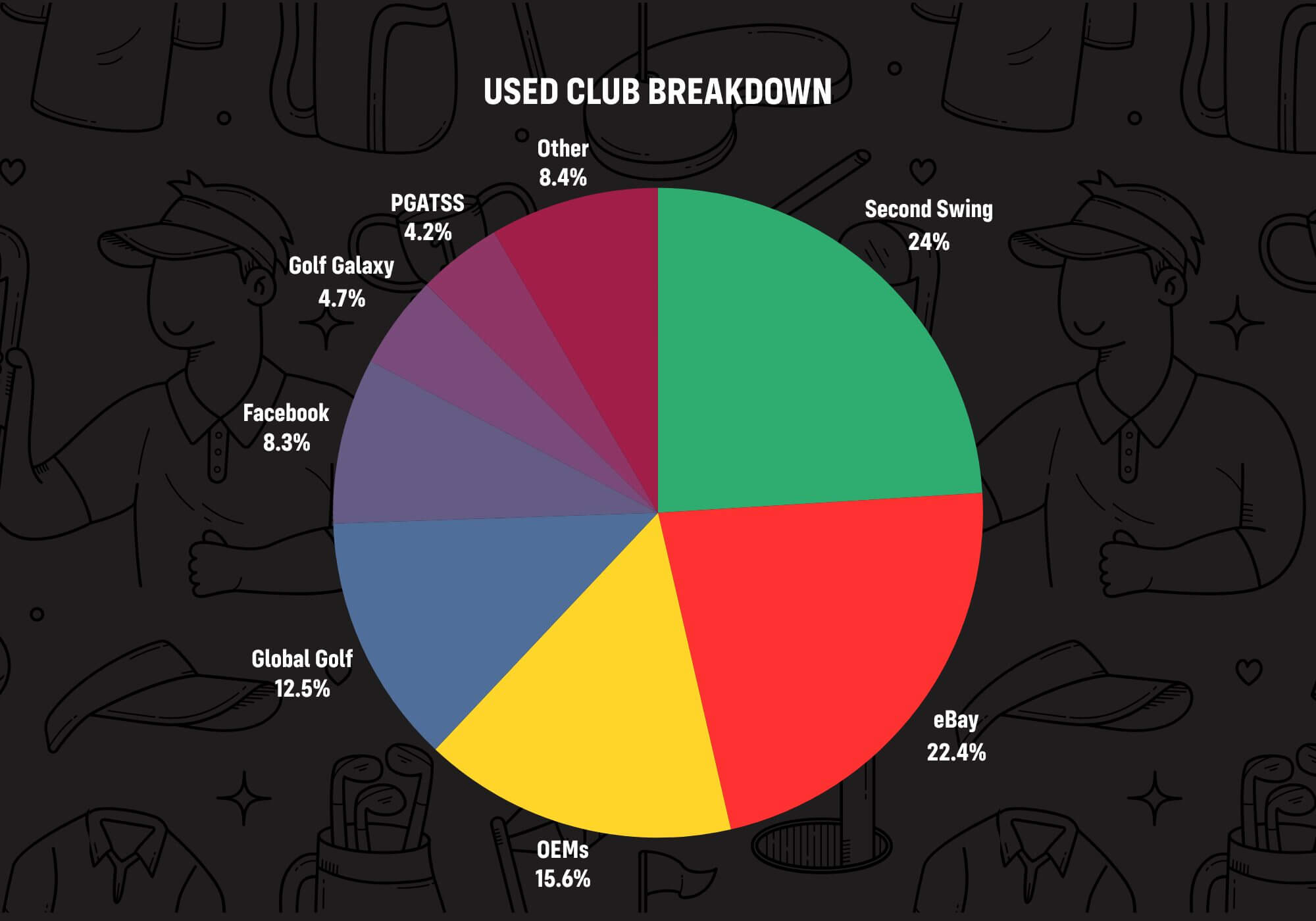 It’s plain to see that golfers mainly are purchasing used golf clubs from two retailers, 2nd Swing and eBay. (This aligns with my personal preferences, although they have no bearing here.)