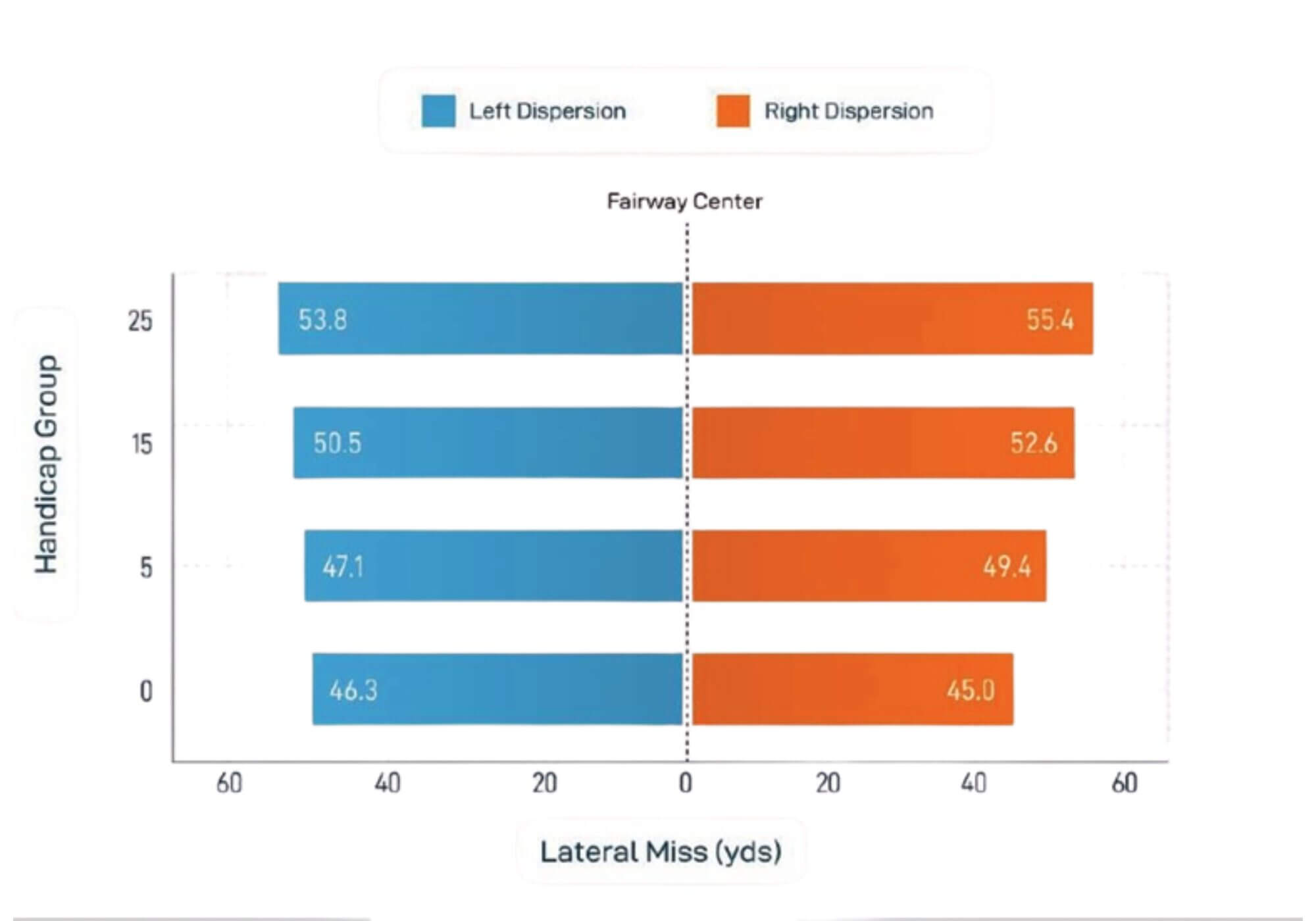 The Shot Scope data shows that tee shot dispersion patterns are surprisingly similar across handicap levels.